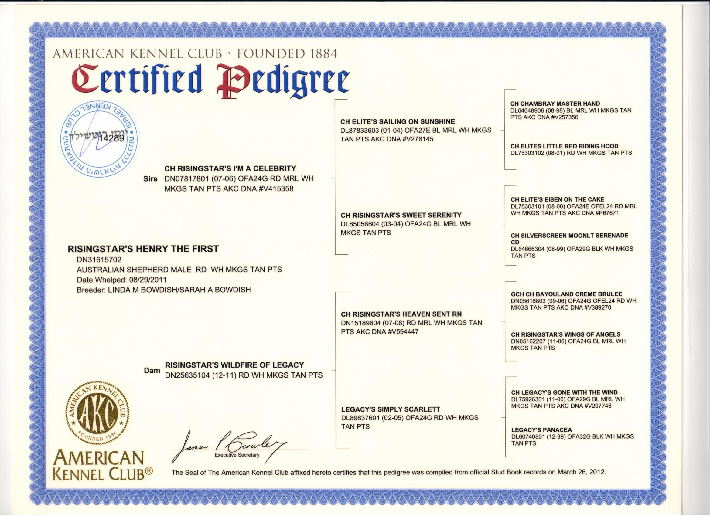 הזכר שלנו, הנרי, רועה אוסטרלי רד-טרי (חום לבן), הינו כלב יבוא מבית גידול מובחר בארה"ב ולו קו-דם מלכותי, נצר לשושלת רועים אוסטרליים אלופים ועתירי תארים משלל תערוכות ברחבי העולם